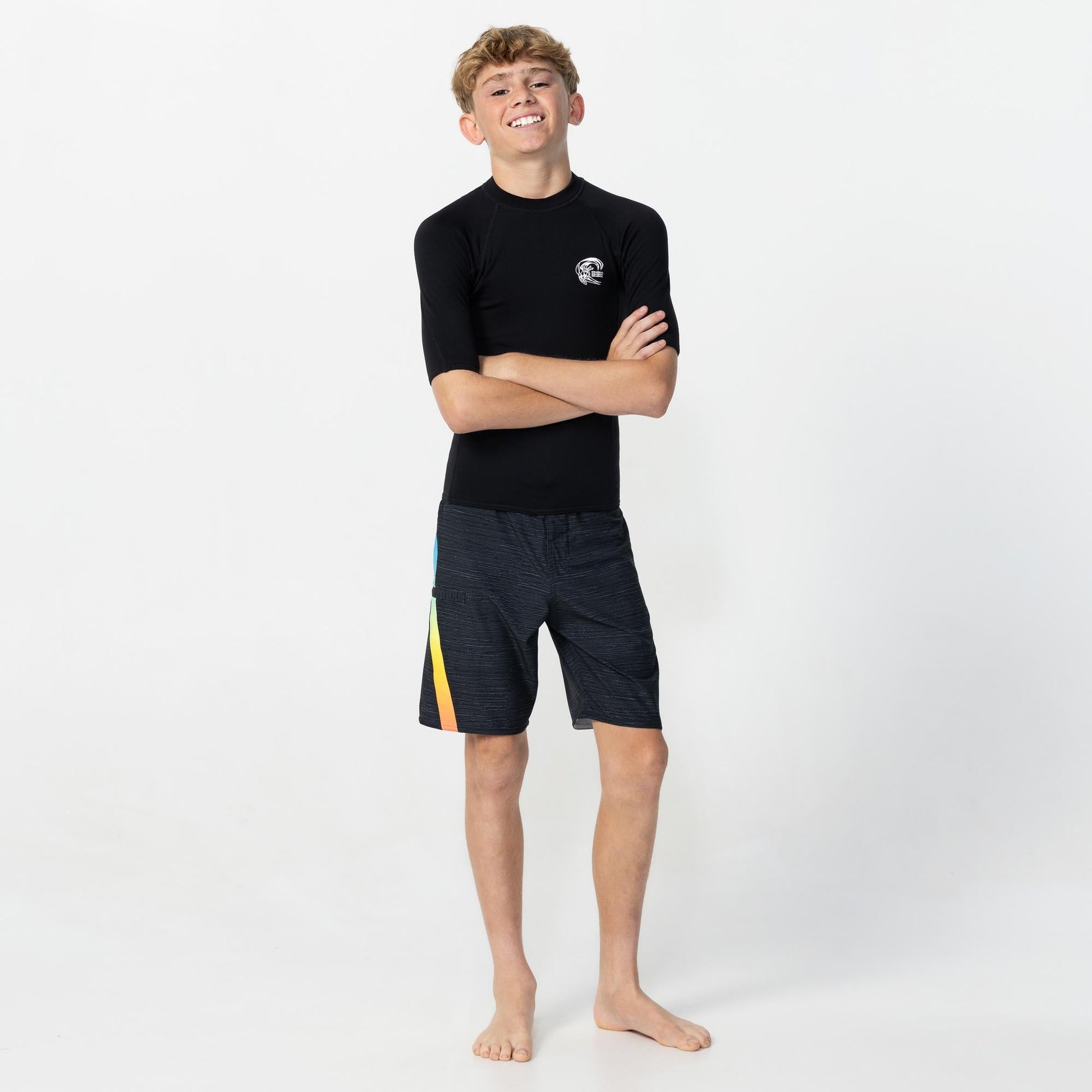 Kid's Thermo Short Sleeve Crew Rash Vest - Black