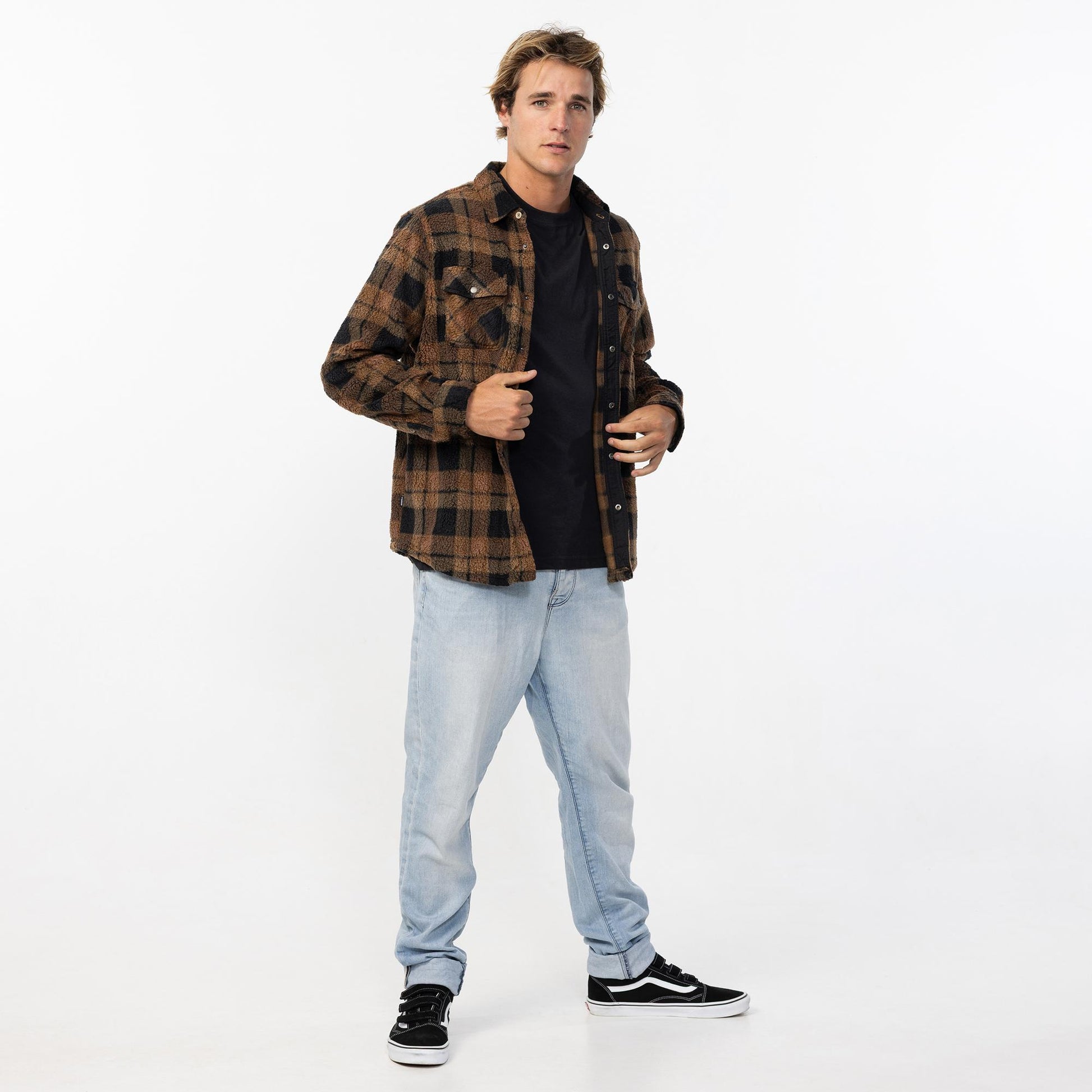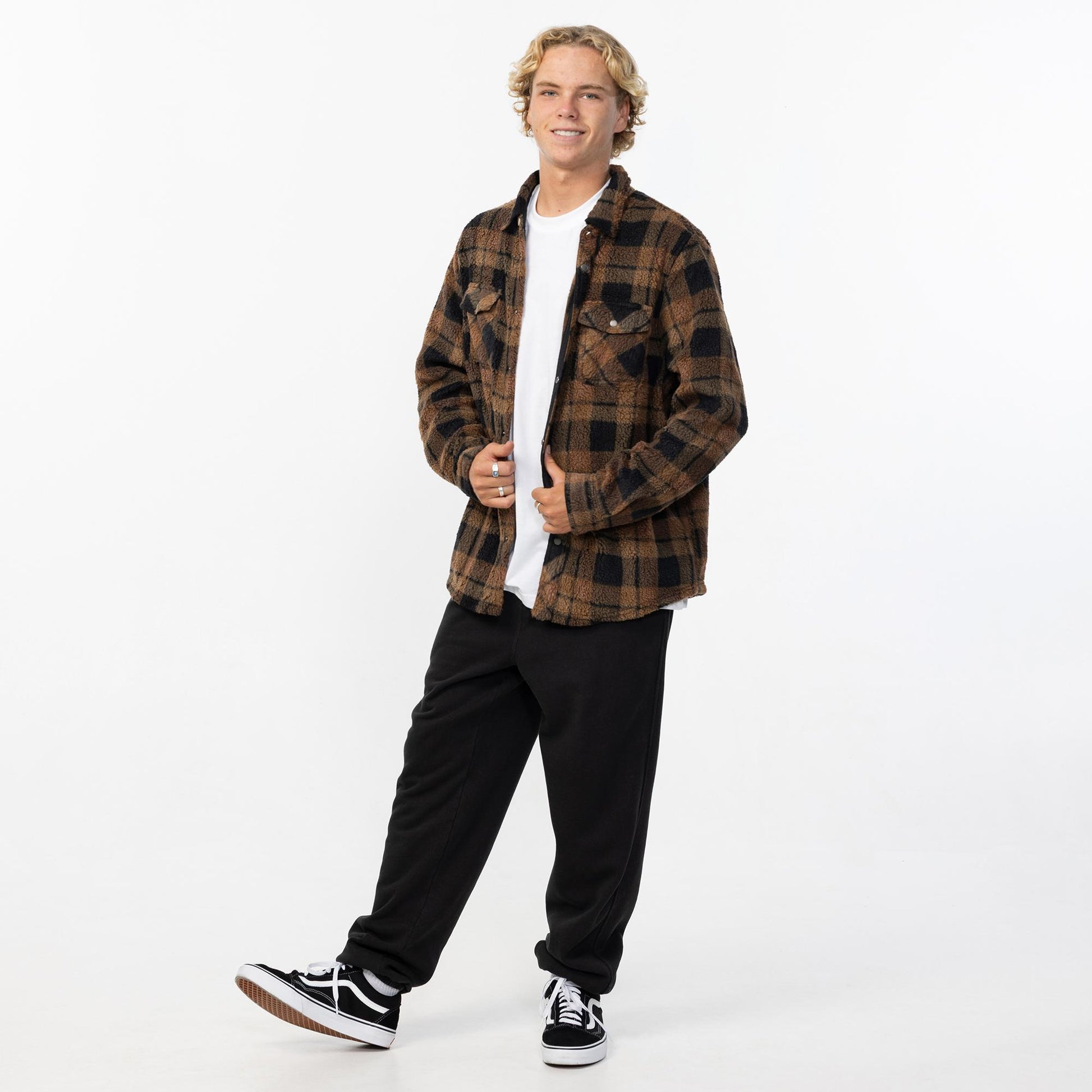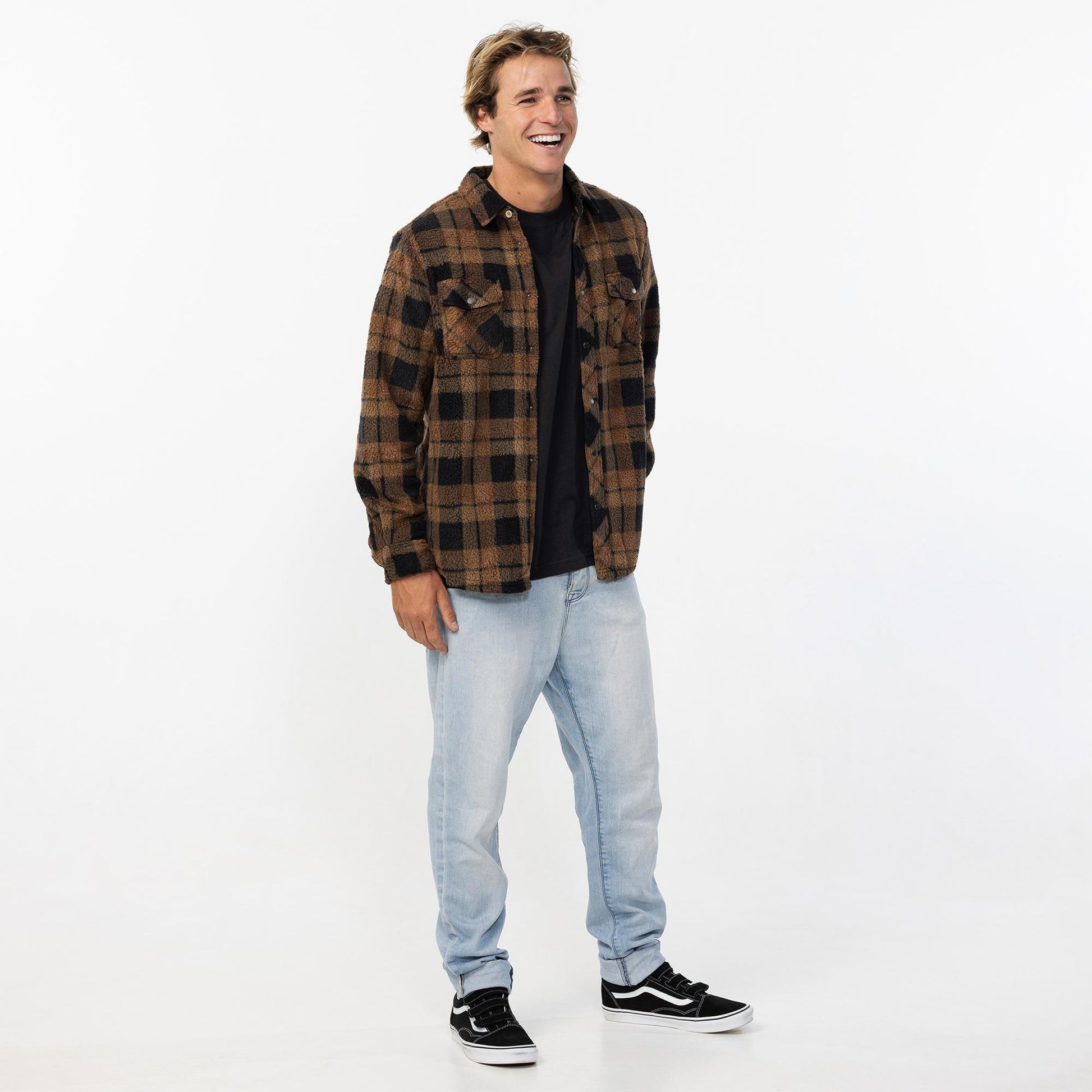 Men's Glacier Plaid High Pile Superfleece - Dark Khaki
