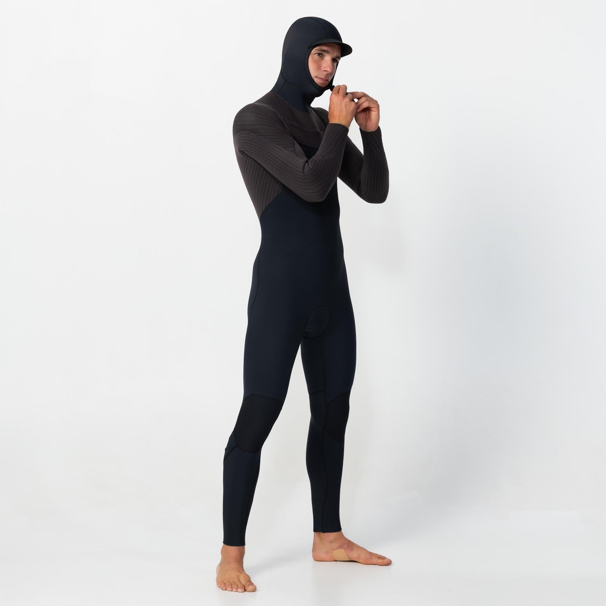 Men's HyperFreak 5/4+ Hooded Steamer Chest Zip - Black Arabica